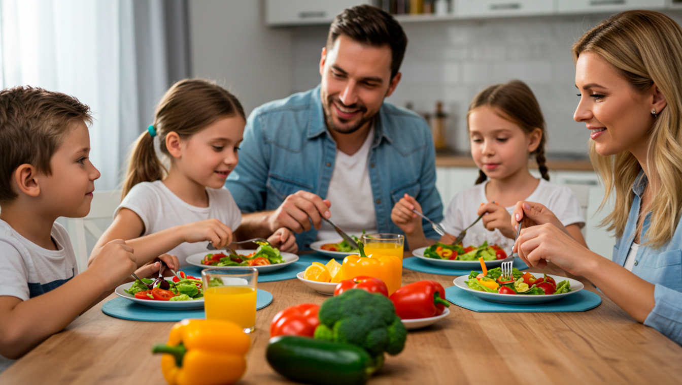 Comece pelo exemplo: envolva as crianças na escolha dos alimentos e torne o momento das refeições algo prazeroso e educativo.